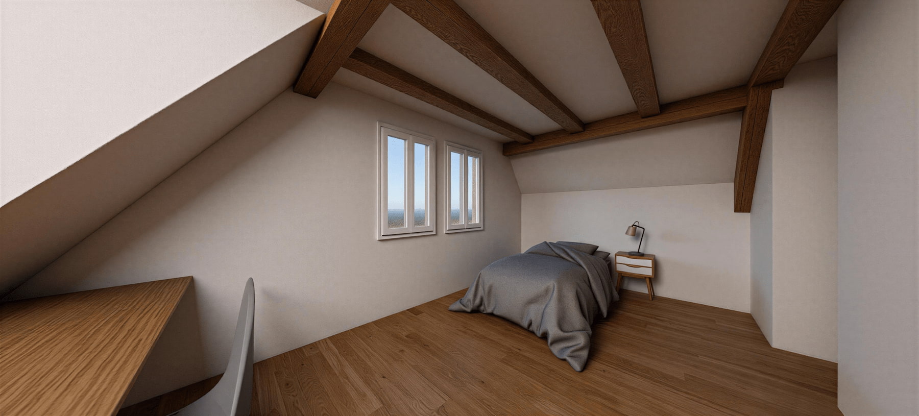 Chambres sous rampants : rangements intégrés, coins lecture, bureaux.
